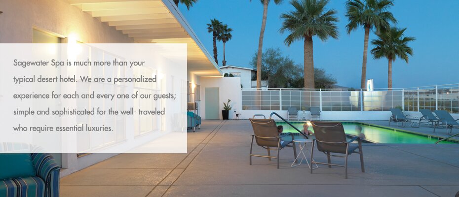 Rhoni Epstein: A Boston native. “After graduate school, I took a three month long road trip across country. I fell in love with the West and decided to stay in Los Angeles, a very horizontal and visually open city compared to Boston, it felt like a good place to create. Applying my degree in counseling and my passion for Art, I became an established photographers’ agent /consultant, assistant professor at Art Center College of Design, and hotelier.” Cristina Pestana: An Italian from Brazil, who Arrived in US in 1989. “I was formerly a marketing director at Alcoa and left it all to pursue my childhood dream to be in America. With my masters in marketing/language from USP in Sao Paulo, Brazil, I landed in America without English. I delivered pizzas in a broken down car, it was challenging but it was all part of achieving my dream. I became a student and then a partner in a small massage school. Applying myself, embracing English and the culture, I helped to grow the school into one of the largest accredited and respected institution in California. Why/How did you get into the boutique spa business?Rhoni: Like Goldilocks, I couldn’t find a bed — a place in the desert that felt just right. I love warm mineral spring water and had experienced the benefits while traveling cross country! DHS has some of the best! Cristina, had explored the mineral water while traveling throughout Brazil. Describe the sense of personal risk you felt and how you countered it. Learning curve?We had absolutely no experience in the hotel business, simply a passion to create and follow the process. The remodel took a year, designing as we went along. We embraced our instincts and did what felt right. Any Big Breaks?Our very first guest, an English writer from Travel & Leisure magazine, arrived with a cold, I greeted her with a pot of tea, honey and lemon. We landed on the cover of the hotels issue ( because of the photography ) The rest is history! Design aesthetic. Tell us everything about your vision.We created a space where people are not burdened by our aesthetics. Tell us a little about the building/renovation process. What major challenges did you face?We bought the hotel “AS IS.” Sagewater Spa’s roof virtually did not exist, the hotel needed a new pool, deck, windows, paint and electrical – everything! Because of our high standards we’ve already replaced the pool and decking for a second time. How did you choose your amenities?Sagewater Spa is an internal and external reflection of our vision based completely on instinct, aesthetic and creative exploration. The linens and towels were an important choice – hand-pressed Frette linens, towels and robes – in the desert! All comforters and pillows are either non-allergic down or non-down. Aveda had never authorized their products for a boutique hotel but with all the press they just couldn’t say no. Any funny stories?One weekend, two film directors checked in, at different times. Believe it or not, each one had been nominated for an Academy Award in the same year! They didn’t discover each other until they had experienced one of our amazing massage treatments. Meeting up at the mineral pool, these colleagues, in surprise and wonderment, both discovered that they shared in the same private getaway! They had a good laugh about each others good taste. What is it about the desert?You have to look to see! It’s quiet, the silky warm water, views of Mt. San Jacinto, fresh air, blue skies the spaciousness. The desert flowers subtle beauty, that without warning, springs forth so brilliantly and at night the clear majestic starry sky. What is it about the spring water?The magic waters are odorless, soothing, and rejuvenating. They heal physical strains and cleanse the body and mind. We like to think of it as the fountain of vibrancy and youth. Even weekend guests feel as if they have been away for a week!