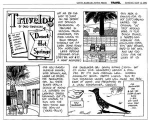 "Guests at Sagewater seem somehow to spend their whole time in the pool, probably on account of the wonderful water and its therapeutic effects. At the end of a long journey through the San Andreas Valley, it bubbles up here in the middle of the desert, steaming at 165° (Fahrenheit), pure and enriched with valuable minerals from deep below ground. At Sagewater, this constant supply is cooled down to 105° F before being pumped into the smaller of the warm pools, and 90° for the swimming pool itself."