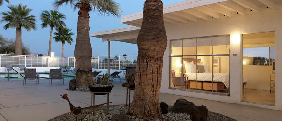 Sagewater Spa, built in 1954, is an intimate seven-room spa located in Desert Hot Springs, California, just 15 minutes east of Palm Springs and 20 minutes from Joshua Tree National Park. An oasis in the desert with a 360-degree view of the mountains, visitors come to Sagewater Spa for its healing waters, which comes from the nearby ground at 165 degrees and is continuously filtered and cooled to fill our 104-degree spa and 90-degree swimming pool. Soaking in our healing, mineral-rich water is the ultimate way to renew both the body and mind. Our drinking water, straight from the tap, is some of the best drinking water in the country. Upgraded without losing its original mid-century architecture, Sagewater Spa and its calming, clean lines and quiet solitude allows visitors to relax with unobstructed interruptions. Your relaxation and comfort is extremely important to us; we appreciate your consideration in maintaining a quiet environment and refraining from using your mobile phone, and we ask that you use ear phones to listen to music in public areas. To better serve our guests, we request a two-night minimum stay, and on holidays, a three-night minimum stay. A two-week cancellation is required. Group and holiday cancellations require a four-week notice. Reservations + Directions: 760-220-1554 |